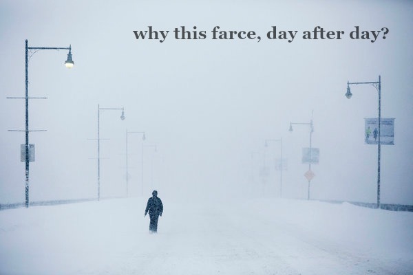 Samuel Beckett, dead some twenty-five years, is nonetheless giving inspiration from the grave in some of the unlikeliest places. First, there is MBecketTA, playwright John J. King’s Tumblr juxtaposing aptly chosen Beckett quotes with bleak photos of snow-crushed Boston. (Hat tip: Jenn Monroe.)