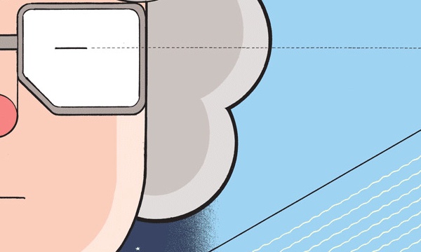 Ware is incredibly subtle with delivering outside-the-panel information. The adult conversations that take place over Putnam’s and Sandy’s heads, ominous like stratus clouds, literally fall off the panel’s edge. Week 7: Sandy and her mother meet Putnam and his father at the beach. (Where is Putnam’s mom?) Mrs. Grains is recently widowed. Mr. Gray is nicer to her than he is at any point to Putnam’s mother. Ware teases at misbehavior that wouldn’t be picked up by Putnam. Week 21: they flirt as he refills her wine glass. Week 34: a magazine in a doctor’s office with the headline “The Swingers Next Door.”
